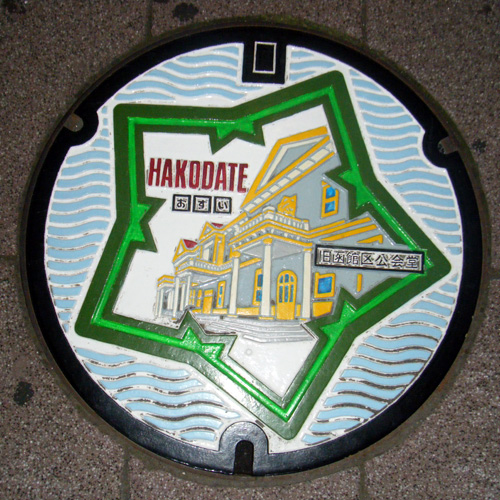 函館名物 五稜郭マンホール! と言うか、旧函館区公会堂マンホール!! もちろんカラーww