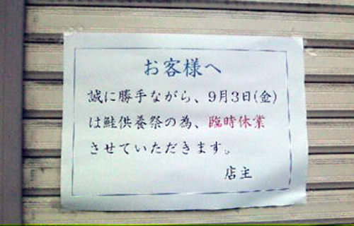 この近所に もう長く住んでいますが、供養祭で臨時休業の日に