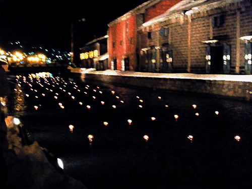 分かりづらいでしょうが、運河の水面に浮かぶ 浮き玉キャンドルの皆さんですww